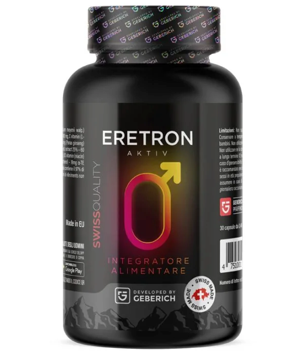Perché si chiama Eretron Aktiv? Il nome del prodotto combina il termine “Eretron”, che richiama la funzione erettile, con “Aktiv”, che indica l’azione attiva della formula. Questa denominazione commerciale vuole comunicare in modo diretto lo scopo del supplemento.